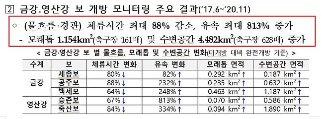 | ▲ 2021년 1월 18일, 국가물관리위원회가 발표한 금강, 영산강 모니터링 자료 |