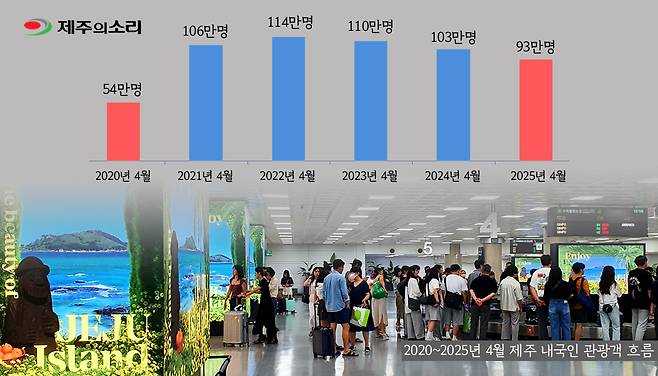 제주도는 관광수요 회복을 기대하고 있지만 향후 전망이 밝지만은 않다. 올해 1월부터 4월까지 제주를 찾은 관광객은 387만명으로 지난해 435만명과 비교해 11% 줄었다.