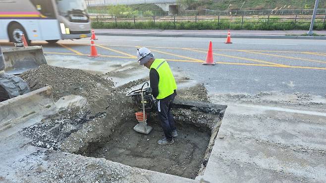 이천시서 땅꺼짐 발생해 버스 바퀴 빠져…현재는 복구 완료