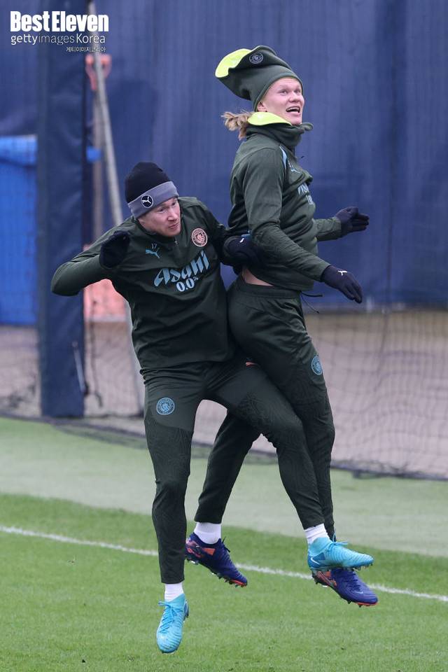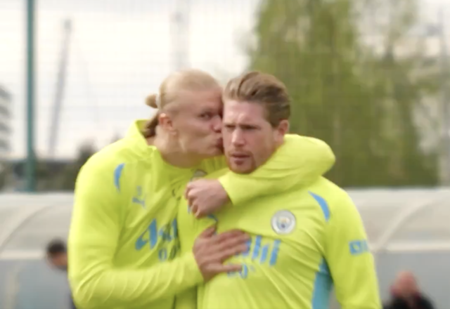 최근 맨체스터 시티(맨시티)의 훈련장에서 공격수 홀란이 미드필더 더 브라위너에게 애정을 표현하는 모습이 포착됐다. 구단이 SNS를 통해 공개한 영상엔 홀란이 더 브라위너를 붙들고 기습 뽀뽀하는 장면이 담겼다.