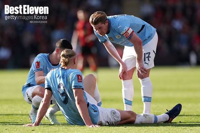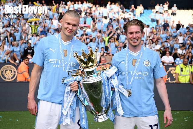 '레전드' 더 브라위너와의 이별을 앞둔 맨시티는 아쉬움이 한가득이다. 홀란 역시 지난 3년간 환상의 호흡을 자랑했던 파트너와의 이별을 믿을 수 없다는 반응이다.
