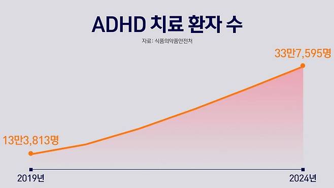 식약처에 따르면 ADHD 치료 환자 수는 지난 2019년 13만3천여명에서 매년 꾸준히 증가했습니다. 지난해에는 33만7천명대로 5년 사이 약 2.5배 급증했습니다.