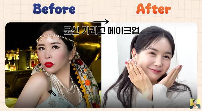 이어 "요새는 약간 청초한 게 예쁜데 너무 시커멓게 하니까 사람들이 '오늘 쌩얼 예뻐?' 하면 '언니 거짓말 하지 마세요' '아이라인 했네'라고 한다. 그게 아니라 화장이 아니고 문신이다"라며 "문신을 너무 진하게 하니까 쌩얼도 쌩얼 같지 않고 사람이 인위적으로 보이는 거다. 그게 나이 들어보이는 아줌마의 지름길이다"라고 속상해 했다.
