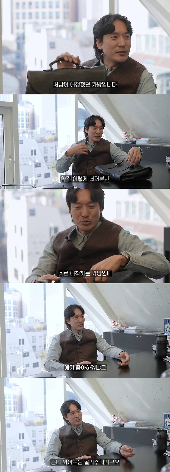 빈티지 느낌이 물씬 나는 가방에는 노트, 필기도구 등이 들어있었다. 김민준은 "마음에 드는 물건이 있으면 오래 잘 쓰나 보다"라는 스태프의 말에, "그렇다. 나중에 자식에게 물려줘야겠다는 생각을 한다. 명품은 아니지만 (빈티지 느낌이 나는) 고가의 벨트가 있는데 제가 그런 걸 사면 아내가 '오래된 거 아니야? 버려'라고 한다. '나중에 아이 주겠다'라고 하면 '애가 좋아하겠냐'라고 하더라"라고 말했다, 이어 "아이가 빈티지에 눈을 뜬다면 저는 줄 가치가 있다고 생각한다. 근데 아내는 몰라준다. 최대한 그런 물건은 안 버리고 가지고 있다"라고 빈티지 아이템들에 애착을 드러냈다.