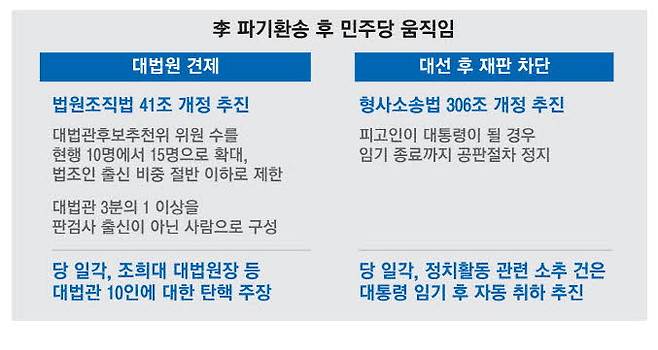 '李지키기' 위인설법 민주당 … "대법관 10명 탄핵"주장까지