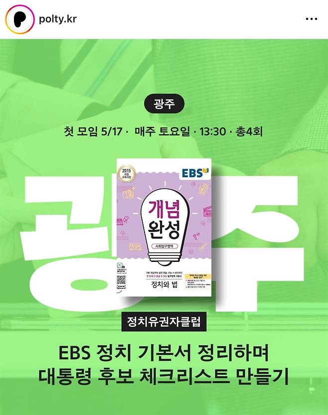 "저는 대구에서 정치공동체 폴티를 운영하고 있는 최하예입니다. 대학을 다니던 시기에 행정학을 전공했는데, 우연히 현대정치사상 수업을 듣게 됐다가 정치 사상에 관심을 갖게 됐습니다. 그래서 관련 수업을 대부분 들었고, 정치학에 대해 공부하면서 정치를 사랑과 삶에 연관지어 설명하는 걸 좋아하게 됐습니다.