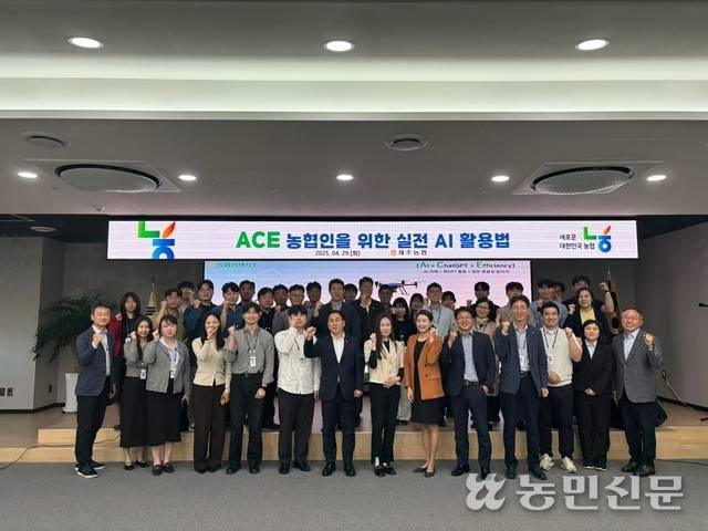 제주농협본부(본부장 고우일)가 4월 29일 본부에서 ‘ACE 농협인을 위한 실전 인공지능(AI) 활용법’ 교육을 했다(사진).