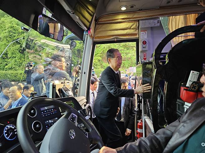 한 전 대행은 이날 오후 5시 37분께 버스를 타고 광주 북구 국립5·18민주묘지의 정문인 민주의문 앞 주차장에 도착했다.