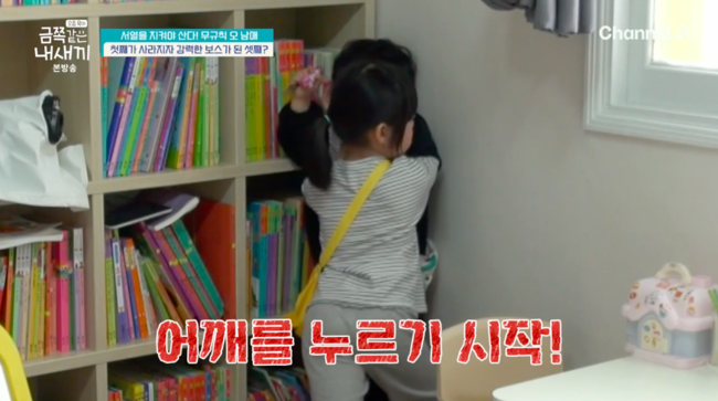 이날 셋째는 엄마가 분리수거를 하러 간 사이, 어린 동생들을 거실로 끌고 나와 자신을 따라하라고 시켰다. 동생들이 집중하지 않자 “나 보라고! 이리 와”라며 군기 잡던 첫째 언니와 비슷한 말투로 동생들에게 소리쳐 눈길을 끌었다.