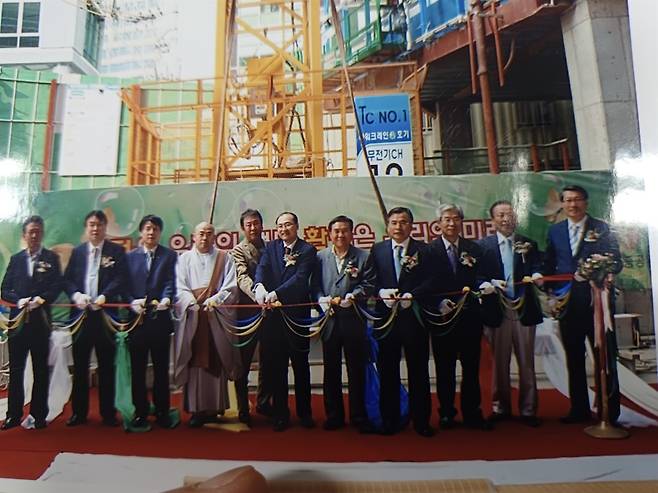| ▲ 시선바로세움3차(현 '에이프로스퀘어') 상량식에 참석한 박영수 전 특검(오른쪽에서 네 번째). |