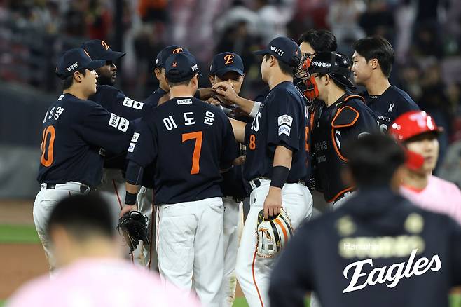 1.황영묵(2루수) 2.플로리얼(중견수) 3.문현빈(지명타자) 4.노시환(3루수) 5.채은성(1루수) 6.이진영(좌익수) 7.이원석(우익수) 8.이재원(포수) 9.심우준(유격수) P.엄상백