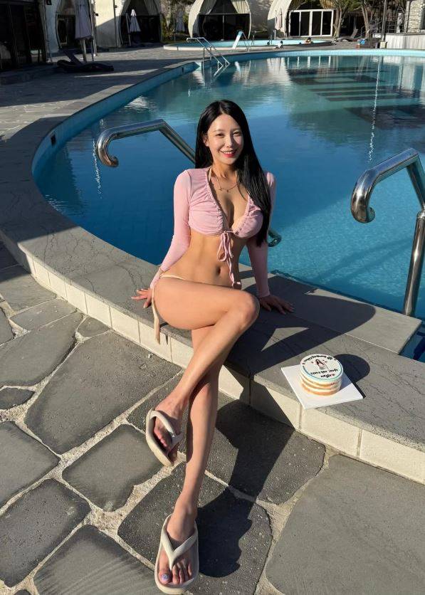 사진 속 그는 한 리조트 수영장을 배경으로 분홍색 비키니를 입고 포즈를 취했다. 특히 늘씬하면서 볼륨감 넘치는 몸매, 탄탄한 복근이 눈길을 끌었다.