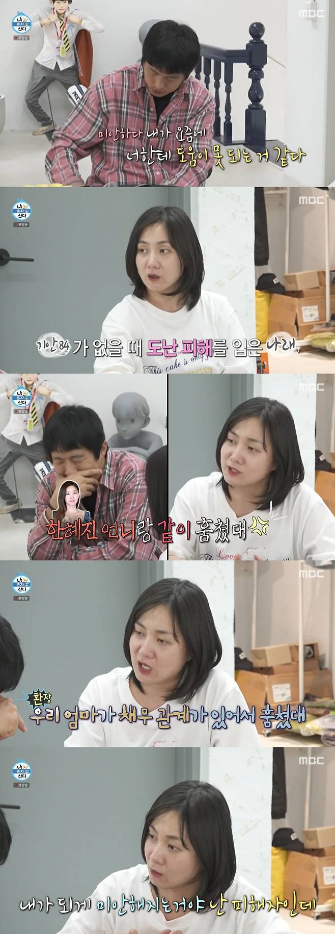박나래는 기안84에게 도난 사건을 언급, "월요일에 물건들이 없어진 걸 알게 됐다. 가짜뉴스가 어디까지 난 줄 알아?"라고 물었고 기안84는 "장도연이 훔쳤다는 얘기도 있던데"라고 말했다. 박나래는 "한혜진 언니랑 같이 훔쳤다더라"라며 실소를 터트렸다. 또 박나래 어머니가 채무 관계가 있어 박나래의 가방을 훔친 거라는 가짜뉴스도 있었다고. 박나래는 "난 피해자인데 내가 미안해지는 상황이 됐다"라며 억울해했다.