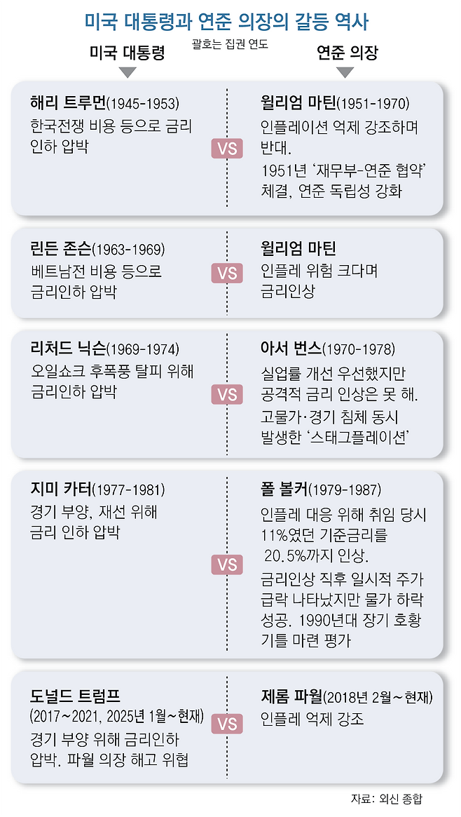 두 사람이 왜 사사건건 부딪치는지, ‘세계 최고 권력자’인 미국 대통령과 ‘세계의 경제 대통령’이라 불리는 연준 의장의 갈등 역사는 어떤지 알아본다.