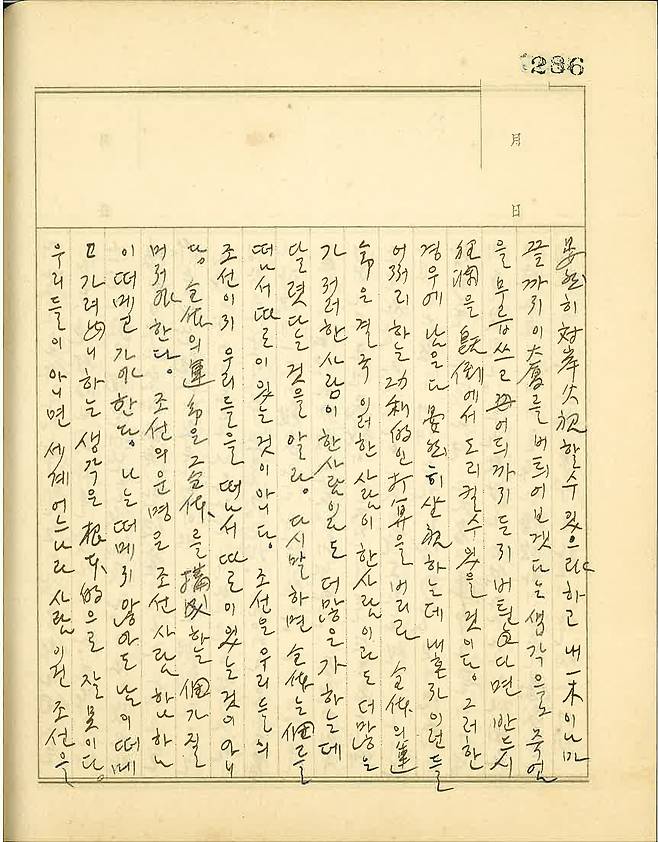 우리 하나하나를 떠나서 조선민족이 따로 있는 것이 아니다. 나 하나쯤, 하는 생각도 물론 나쁘지만 내 하나가 아무리 힘쓴들 이 큰 덩어리인 전체가 어찌 잘 되어 나갈 수 있을까 하는 걱정도 또한 나쁘다. 설사 다른 사람이 다 어긋난 길을 걸을지라도 나만은 옳은 길을 걷고 이 옳은 길을 다른 사람들에게 보여주어서 모두 따라오게 해야 한다는 기개가 있어야 할 것이다.