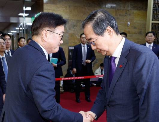 우원식 국회의장은 이날 마은혁 헌법재판관 후보자 미임명을 두고 한덕수 대행을 향해 권한쟁의심판 등 대응 절차를 진행하겠다고 밝혔다. 이에 국민의힘 신동욱 수석대변인은 "국민들이 산불로 고통받는 상황에서 국회의장이 또다시 헌재와 한덕수 대행을 겁박하고 있다"고 반발했다. 이후 더불어민주당 이재명 대표가 31일 회동을 제안했지만, 한 대행은 "국가 경제 및 민생과 직결되는 현안에 우선 대응한 뒤 검토하겠다"며 사실상 거부 의사를 밝혔다. 사진=연합뉴스