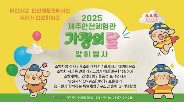어린이날 본행사 이외에도 5월 3일과 4일 이틀간 사다리차 등 다양한 소방차량을 전시해 어린이날 분위기를 조성할 예정입니다. 보다 자세한 내용은 제주안전체험관 누리집 공지사항에서 확인할 수 있습니다.