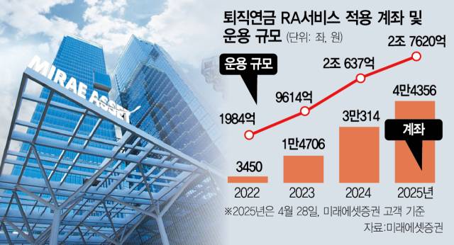 3일 금융투자업게에 따르면 미래에셋증권은 이르면 이달 자체 기술로 개발한 퇴직연금 RA 일임형 서비스를 선보일 계획이다. 지난해 정부의 혁신금융서비스로 지정된 데 따른 것으로, 국내 증권사 중에선 자체적으로 퇴직연금 RA 일임 서비스를 제공하는 첫 사례다. 삼성증권과 KB증권도 조만간 관련 서비스를 선보일 예정이다.
