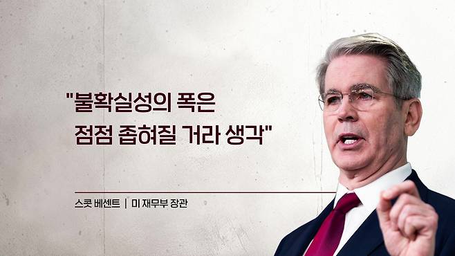 네. 그 베센트 장관이 언급한 것들도 대부분 이제 트럼프 대통령이 이야기한 것과 큰 부분에서는 결이 같았는데요. 기자회견 때 특히 베센트 장관에게 집중적으로 질문이 들어왔던 게 바로 관세였거든요. 관세 협상 자체가 불러오는 어떤 불확실성에 대한 문제 의식을 바탕으로 한 기자들의 질문이 많았는데요.