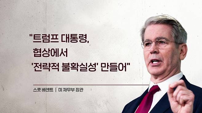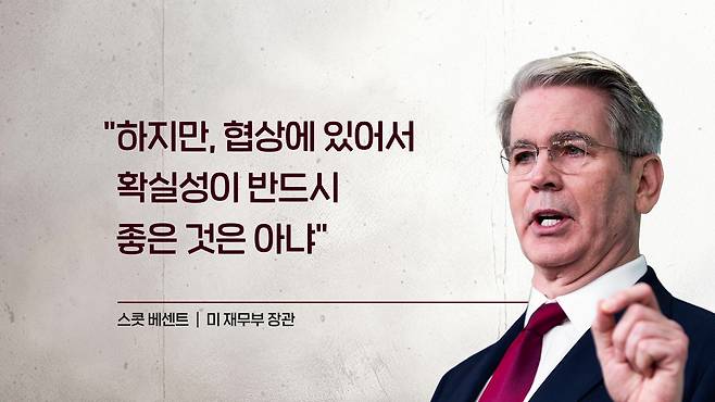 베센트 장관의 답은 관세 협상을 하고 있으니까 불확실성의 폭은 줄어들 것이다, 합의안을 발표하기 시작하면 확실성은 확보가 될 것이다라고 하면서요. 트럼프 대통령은 ‘전략적 불확실성’을 취하고 있다. 근데 협상에서 확실성이 반드시 좋은 것만은 아니다. 이렇게 이야기를 했습니다.