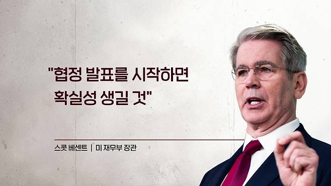 한국 정부는 부리나케 지난 새벽에 설명 자료를 내고요. 그런 의사를 전달하거나 논의한 적이 없다 이렇게 베센트 장관의 발언에 대해서 강하게 부인을 한 상태입니다.
