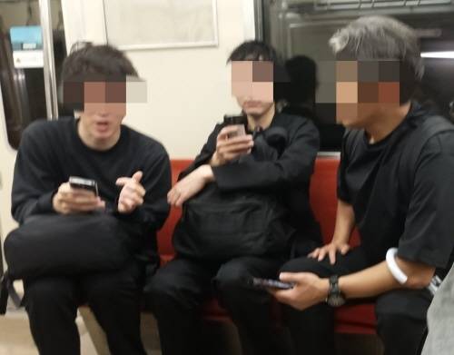 | ▲ 공항선 전철에서 마주한 마츠다 씨(맨 왼쪽). 한국어를 공부하고 있다는 그는 비상계엄이라는 것을 처음 알았다고 말했다. |