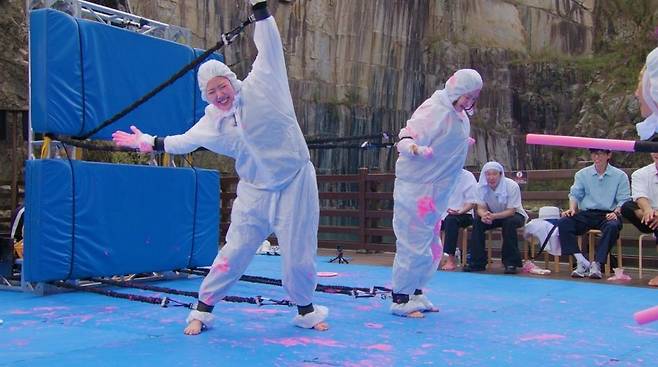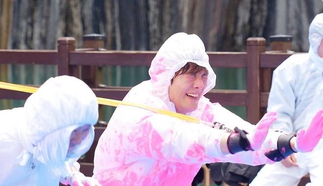 그런 가운데 지예은은 언니·오빠 할 거 없이 스펀지봉을 휘두르며 하극상을 선보여 큰 웃음을 예고했다. 팔다리가 끈에 묶인 채, 상대팀에게 물감을 묻혀야 하는 미션에서 지예은은 자신에게 달려드는 지석진을 향해 "요놈아~"를 연발하며 한껏 농락한다. 하지만 이내 공수가 교체되자 지예은은 보이지 않는 누군가에게 조종당하는 것처럼 목각 인형이 돼 몸 개그의 향연을 펼친다.