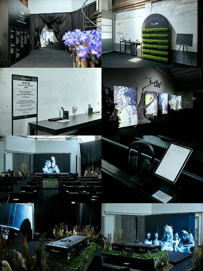 그동안의 아이들 발자취가 담긴 벽과 멤버들에게 메시지를 남길 수 있는 공간을 시작으로 ‘for G’ 영상의 오브제로 연출된 i-dle 존, G 관과 함께 아이들의 미니 8집 전곡 일부를 들을 수 있는 리스닝 존까지 팬들과 G를 떠나보내는 방식으로 연출됐다.
