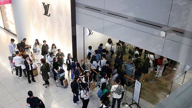 ▲ 1일 인천국제공항 제1여객터미널 출국장 내 SK텔레콤 로밍센터에서 출국자들이 유심 교체를 위해 줄을 서고 있다.