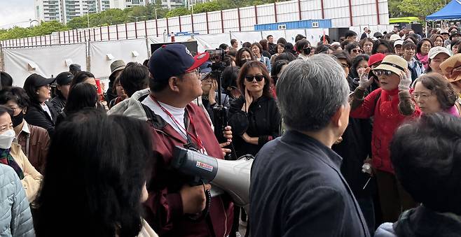 한 후보 지지자 200여명은 낙담한 얼굴로 킨텍스 제1전시장 앞 1B 출구를 지키며 한 후보를 기다렸다. 이들은 개선장군처럼 손팻말을 흔들고 나오는 김 후보 지지자들을 향해 "니들이 당을 망쳤다", "대선에서 이재명 찍는다"며 격앙된 반응을 보였다.