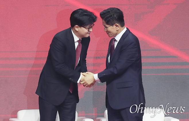 반면, 한동훈 후보는 선거인단 투표에서 15만5961표로 크게 밀렸을 뿐만 아니라, 여론조사 결과에서도 48.19%로 뒤쳐졌다. 최종 합산 34만9916표로 43.47%를 기록했다. 10%p 이상의 격차로 패배한 것이다.