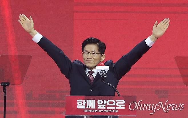 3일 오후 경기도 고양시 일산 킨텍스에서 진행된 이번 전당대회는 선거인단 유효 투표 결과 50%, 역선택 방지 조항을 반영한 여론조사 결과 50%를 합산하는 방식으로 치러졌다. 선거인단 76만4853명 중 총 투표 수는 40만2481표로, 최종 투표율은 52.62%였다. 여론조사는 지난 1일과 2일, 양일간 4개 여론조사 기관에 의뢰하여 각 1500명씩 총 6000명을 표본 조사했다.