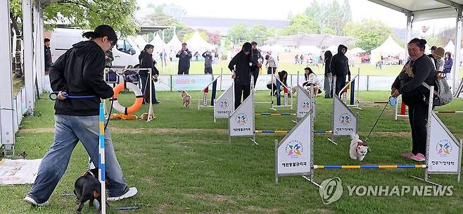 (임길=연합뉴스) 3일 전북 임실군 오수면에서 열린 '2025 임실N펫스타'에서 관광객들이 반려견들과 즐거운 시간을 보내고 있다. 축제는 오는 5일까지 임실 오수의견공원과 의견관광지 일원에서 진행된다. 2025.5.3 [임실군 제공. 재판매 및 DB 금지]