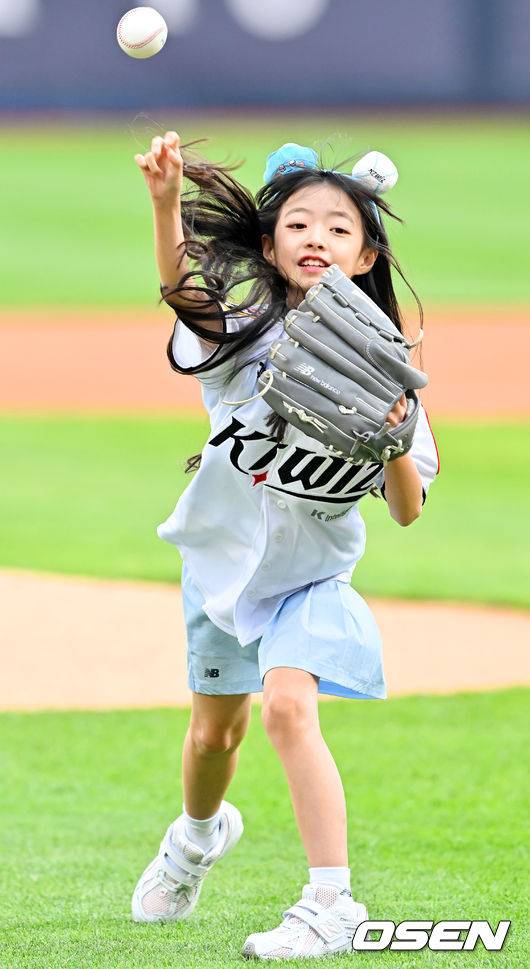 경기 전 아역 배우 오지율이 시구를 하고 있다. 2025.05.03 / rumi@osen.co.kr