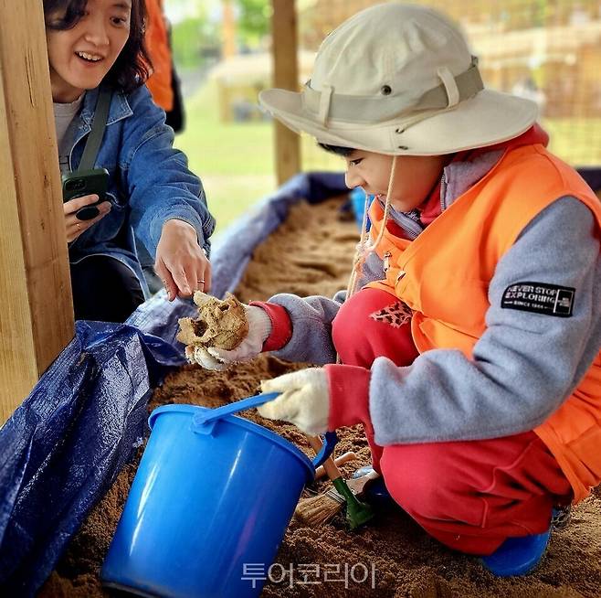 [투어코리아=유경훈 기자] 국내 대표 선사문화 축제인 공주 석장리 구석기 축제가 3일 우리나라 최초 구석기 발굴유적지인 석장리박물관과 상왕동 일원에서 개막해 어린이가 구석기인 유물을 찾는 '나는야 고고학자 발굴 체험'에 참가해 유물을 발굴하자 기뻐하고 있다.