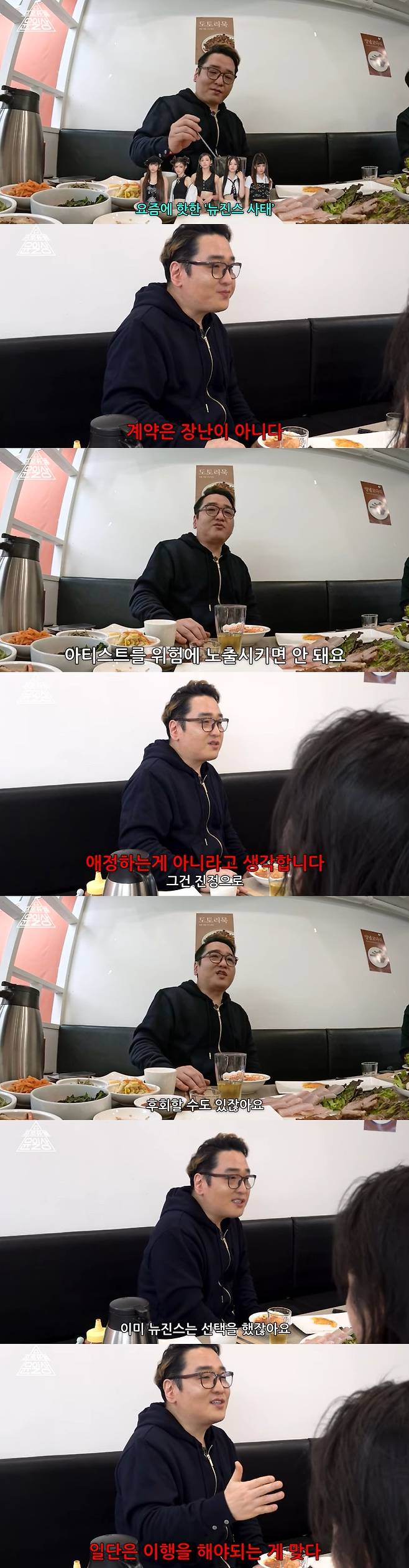 이어 "그건 진정으로 애정하는 게 아니라고 생각한다"며 "뉴진스 멤버들이 너무 가슴이 아프다. 먼 훗날 후회할 수도 있지 않냐. 먼 훗날이 돼보지 않고는 안 보인다. 그러면 어른들이 도움이 되야 한다. 근데 그 옆에 있는 어른들이 그 친구들의 앞날을 본인의 이익 때문에 핸들링을 한 게 아닌가 생각이 든다"고 덧붙였다.