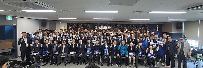 (서울=연합뉴스) 더불어민주당 경남도당은 3일 오후 경남 창원시 경남도당 민주홀에서 대선 선거대책위원회 출범식을 개최했다.
