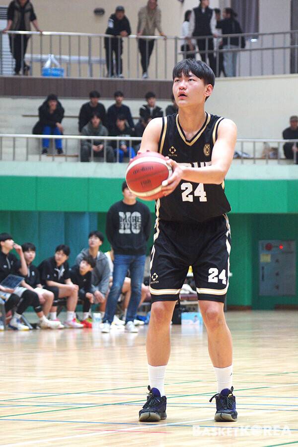 앞서 열린 F조 경기선 홍대부중이 막강 공격력을 뽐내며 호계중을 105-56으로 가뿐히 따돌렸다. 김아준(28점 5리바운드 3어시스트 2스틸)을 필두로 5명이 두 자리 득점을 올린 홍대부중은 단 한 차례의 고비도 없이 여유있게 경기를 마무리, 조 2위로 결선 무대를 밟았다.