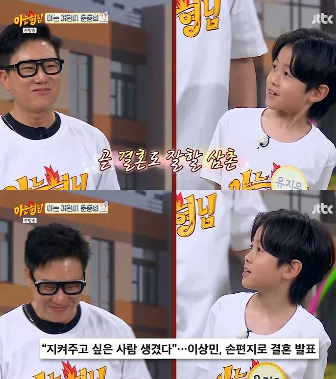 이날 '아는 어린이 운동회' 코너에는 형님들과 아이들이 짝을 이뤄 팀을 꾸렸다. 이상민과 짝이 된 유지우는 "일단 상민 삼촌 멋지고 랩도 잘한다"며 그를 칭찬했다.