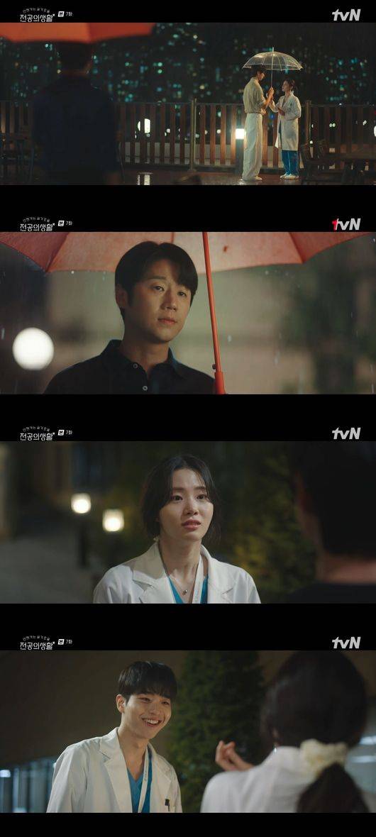 그러나 두 사람의 '쌍방 로맨스'에도 빨간불이 켜졌다. 이영은 응급 수술을 함께 끝낸 도원에게 "커피 사주시면 안돼요?"라며 적극적으로 대시했고, 도원을 기다리 던 중 이영은 비를 맞게 됐다. 그러자 뒤에서 마취과 레지 3년차 함동호(김이준 분)가 이영에게 우산을 씌워주며 등장했다.