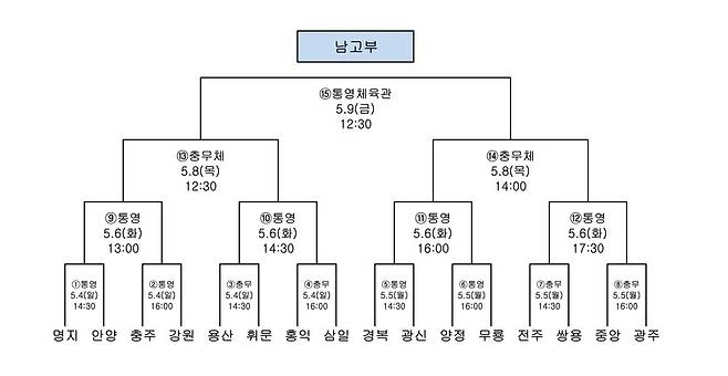 남자부 결선은 오는 4일 명지고-안양고, 단대부중-광신중 경기로 시작된다. 남중부 결승은 8일, 남고부 결승은 9일 통영체육관에서 열린다.