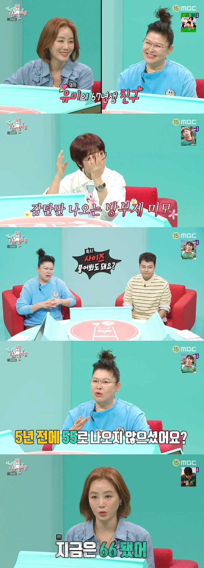이어 홍현희는 "44였지"라고 거들었고, 김성령은 "55였다. 지금은 66 됐다. 진짜로"라며 달라진 사이즈를 고백했다.