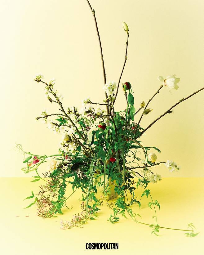 “봄은 매해 찾아오지만, 매번 낯설고 귀한 계절처럼 느껴집니다. 환경오염으로 봄이 점점 흐릿해진다고 느끼는 요즘, 겨우내 웅크리다 조심스레 피어난 사랑스러운 꽃들을 이 계절이 가진 고유의 감각을 오래 지키고 싶다는 마음으로 골랐습니다. 연분홍빛의 은은한 향을 지닌 벚꽃, 피어나면 풍성한 꽃잎이 매력적인 작약, 곧은 선과 두툼한 꽃잎이 우아함을 자아내는 목련, 녹색 이파리와 분홍 꽃봉오리가 달린 덩굴식물인 학재스민, 짙은 초록 잎으로 공간을 단정하게 잡아주는 자태의 줄호엽란, 오묘한 보라색과 분홍색 덩굴이 봄에 정말 잘 어울리는 스위트피까지. 봄에 피어난 이 꽃들은 어떻게 봄이 온 줄 알고, 땅을 밀어내며 올라오는 걸까요? 저는 그 모습이 늘 대견하고 경이롭게 느껴집니다. 시장에서 쉽게 볼 수 있는 꽃, 빠르게 소비되고 쉽게 잊히는 것들 속에서 전 온 힘을 다해 땅 밑에서 자신의 모습을 힘차게 드러내는 들꽃과 야생화를 통해 환경에 좀 더 귀 기울이고 싶습니다. 무심히 지나치지 말고 아름다운 순간을 더 오래, 자주 마주할 수 있는 날들이 오기를 바라게 되는 계절입니다.” by 임주연(플라워 디렉터, ‘풀꽃’ 오너)