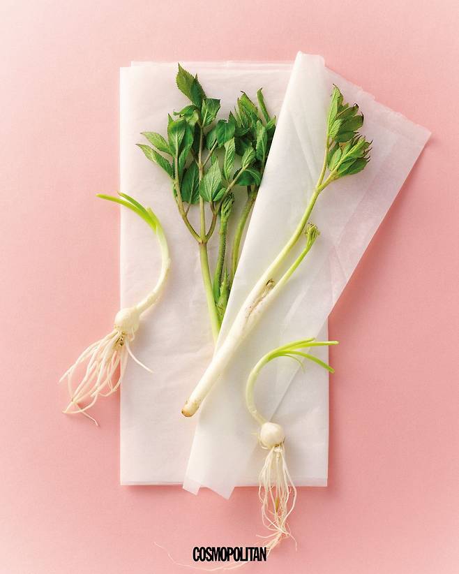 “동그란 형태가 쪽파의 머리 같기도, 작은 마늘알 같기도 한 은달래는 우리가 흔히 아는 달래의 비늘줄기를 기존 재배 기간보다 한 해 정도 더 길러 푸른 잎을 제거한 흰색의 알뿌리라는 사실. 조금은 생소할 수 있지만, 달래보다 알이 굵고 아삭한 식감에 매콤하고 알싸한 향을 짙게 품은 나물이에요. 은달래의 맵고 알싸한 향은 나른한 봄, 입맛을 돋게 하는 식재료이기도 하죠. 자근자근 씹다 보면 고소한 맛이 은은하게 입안에 감돌죠. ‘땅두릅’이라고도 불리는 백두릅은 보통 나무에서 자라는 참두릅과 달리 땅에서 새순을 올리며 자라는데, 식감이 부드럽고 쌉싸름한 향이 특히나 매력적이에요. 줄기에 가시가 붙어 있는 참두릅과 달리, 가시가 없어 손질도 한결 편하죠. 매일 식탁에 오르는 무침 반찬으로 먹어도 좋지만, 은달래와 백두릅은 조개나 오징어 같은 해산물과 궁합이 좋아요. 관자와 오징어를 질기지 않을 정도로 구운 뒤 두 나물을 곁들여보세요. 한입 가득 봄을 머금은 기쁨이 단번에 느껴질 거예요.” by 조서형(셰프)