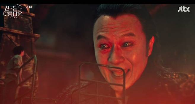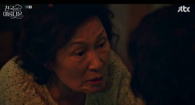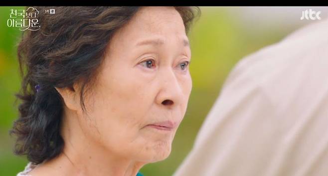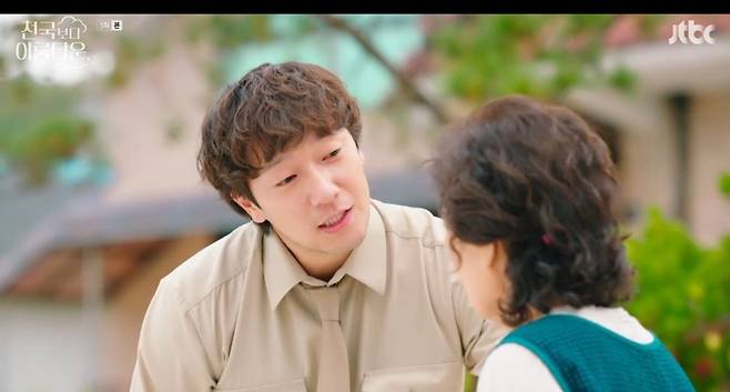 3일 JTBC ‘천국보다 아름다운’에선 아내 해숙(김혜자 분)을 다시 천국으로 데려가고자 지옥을 찾은 낙준(손석구 분)의 모습이 그려졌다.
