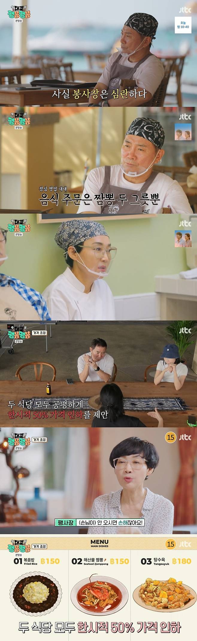 제작진은 "두 식당 모두 가격을 50% 인하하는 것이 어떨까"라고 물었고, 이봉원은 "좋다"며 가격과 인건비 모두 현지에 맞춰 조정할 것을 결정했다.