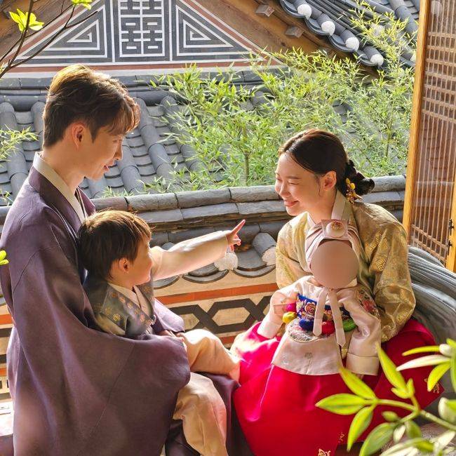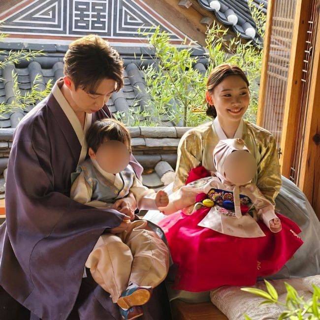사진 속에서 김수민은 남편, 두 아이와 한복을 입고 행복한 표정을 짓고 있는 모습이다. 특히 검사 남편의 얼굴을 공개했는데 훈훈한 얼굴이 눈길을 끈다. 고개를 숙이고 있지만 훈훈함을 느낄 수 있는 얼굴이다.