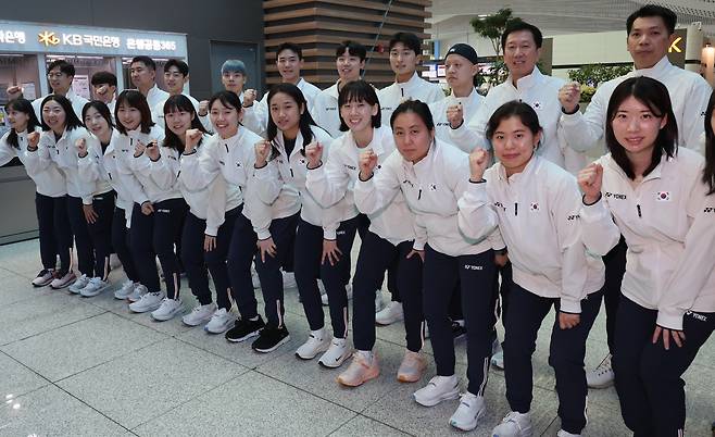 | ▲ 24일 인천국제공항 2터미널에서 배드민턴 국가대표팀 박주봉 감독과 선수들이 세계혼합단체선수권대회(수디르만컵) 출전을 위해 출국에 앞서 기념촬영을 하고 있다. |