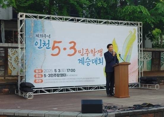 이민우 인천민주화운동계승사업회 이사장은 대회사에서 "인천시가 오는 7월에 5월 3일을 인천시 기념일로 지정한다고 한다. 앞으로 인천 5·3민주항쟁 기념일은 인천시 기념일을 넘어 국가 기념일이 되도록 노력해야 한다"며 "1986년 5월 3일에 민주주의를 향한 위대한 투쟁을 했던 시민·학생·노동자를 기억하고, 그들이 보여준 민주주의에 대한 열망과 투쟁을 잊지 않고 기리자"고 말했다.