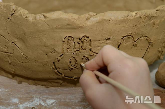 [울산=뉴시스] 배병수 기자 = 2025 울산 옹기축제가 열리고 있는 4일 오전 울주군 외고산 옹기마을 박물관앞에서 어린이가 찰흙놀이를 하고 있다. 2025.05.04.bbs@newsis.com.
